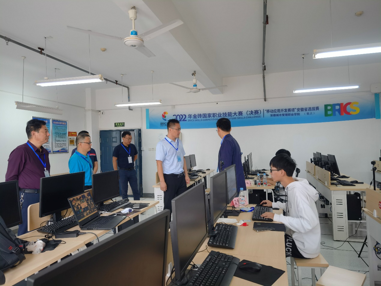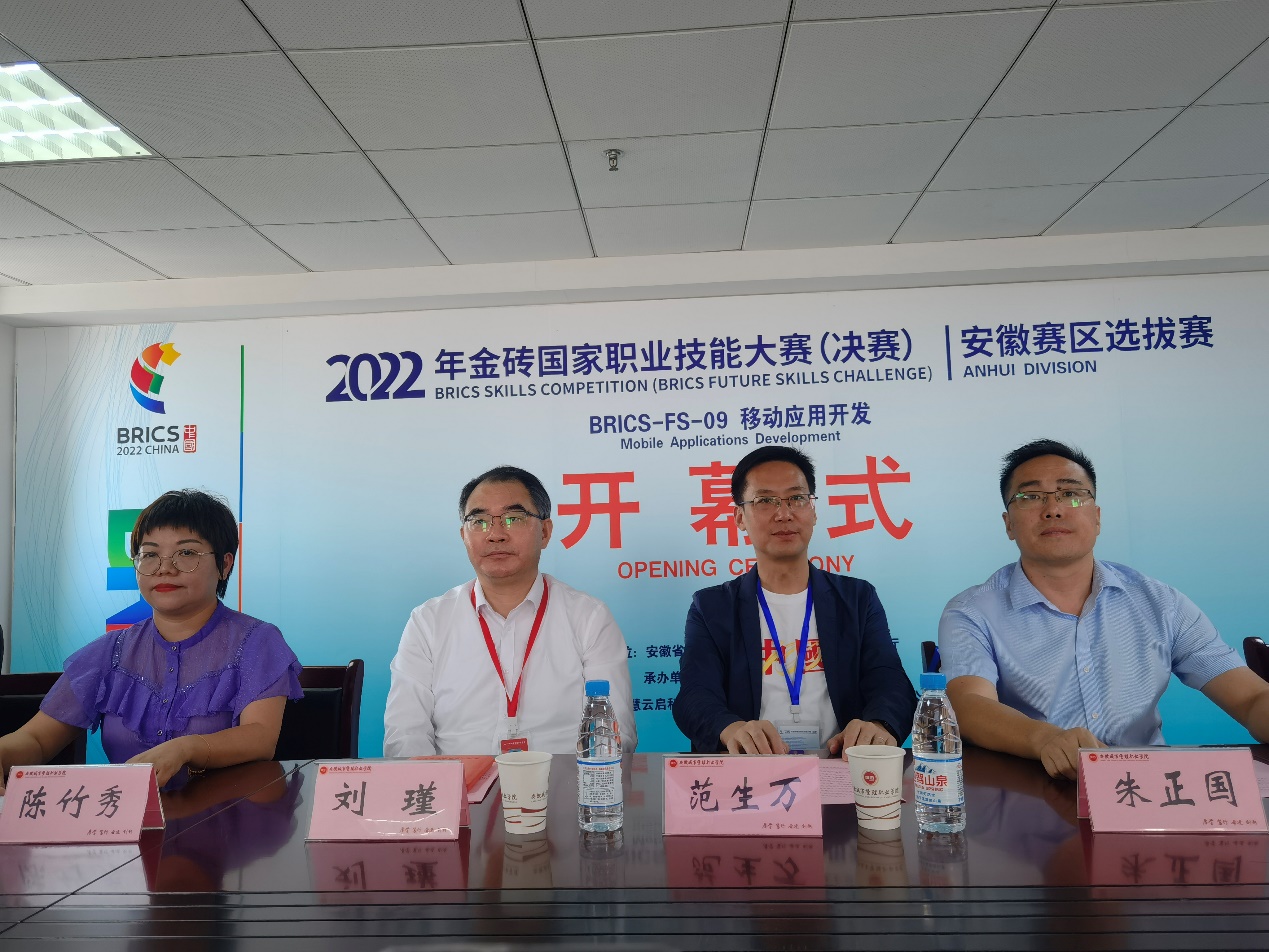9月30日,由安徽省教育厅、安徽省人力资源和社会保障厅主办的2022年金砖国家职业技能大赛(决赛)安徽赛区选拔赛移动应用开发赛项在我院圆满落幕。院长刘瑾出席选拔赛开幕式。