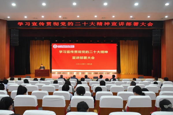 11月9日,学院举行学习宣传贯彻党的二十大精神宣讲部署大会,在前期传达学习党的二十大精神基础上,认真学习贯彻习近平总书记一系列重要指示和党中央、省委决定,深入学习党的二十大精神,对学院各基层党组织学习宣传贯彻工作作出安排。学院党委书记张明辉作宣讲部署报告。