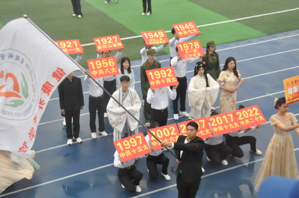 随后,各二级学院、中专部的学生方阵和教职工代表队方阵精神抖擞地依次迈进会场,独特的职业服装、激情的拼搏口号,充分展现了朝气蓬勃、健康向上的精神面貌。各方阵的特色表演用创意表达着青年学子爱党爱国、敬业奉献的赤诚之心,学院十三个分工会的教职工方阵成为本届入场式方阵队伍的一大亮点。