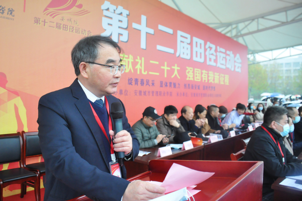 学院党委书记张明辉宣布学院第十二届田径运动会开幕,院长刘瑾为运动会开幕式致辞,学院领导孙建华、章小槟、秦少锋、聂宗瑶出席开幕式,学院各部门负责人、二级学院党政负责人、全体运动员、裁判员、领队和师生代表参加开幕式。