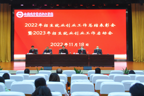 为深入学习贯彻党的二十大精神,总结工作,分析形势,全面部署2023年学院招生就业创业工作,11月18日上午,学院召开2022年招生就业创业工作总结表彰会暨2023年招生就业创业工作启动会。党委书记张明辉、院长刘瑾、党委副书记孙建华、纪委书记秦少锋出席会议,各职能部门、各二级学院(教学部)党政负责人,各专业教研室负责人,毕业班辅导员参加此次会议。会议由副院长聂宗瑶主持。