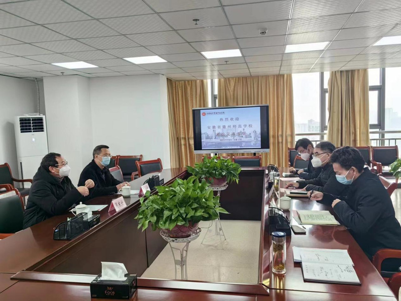 刘瑾对洪锋一行的到访表示欢迎,并对徽州师范学校多年来给予学院的支持表示感谢。他指出,徽州师范学校作为历史悠久的职业学校,学院要积极学习借鉴徽州师范学校在人才培养、社会服务等方面取得卓越成绩的丰富经验。面对职业教育发展的新形势新要求,双方应立足当地经济发展趋势和社会发展人才需求,深化合作,共建共享,为培养更多高素质技术技能人才做出贡献。