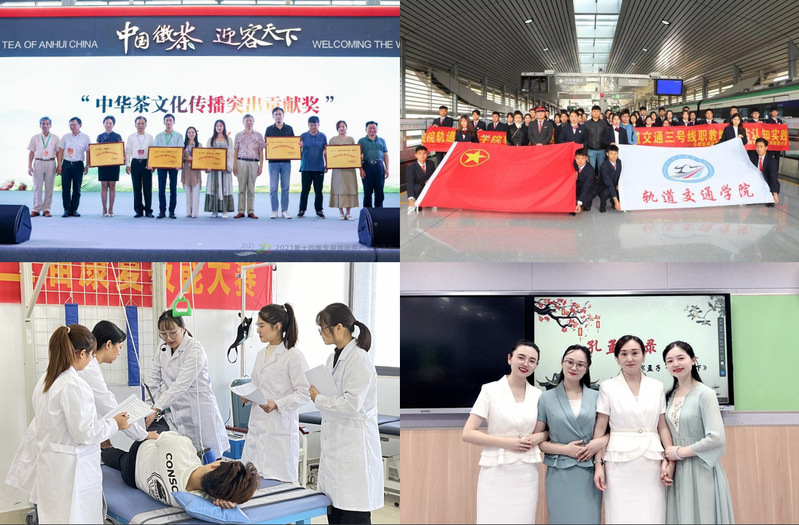学院坚持“立德树人、德技并修、立足安徽、服务城市”的办学理念”,依据安徽省加快专业结构优化支撑服务制造强省建设的指导意见,对接“中国制造2025”,深度融入“长三角一体化建设”等国家战略,服务安徽十大新兴产业高质量发展行动,在新一代信息技术、新材料、新能源、生命健康等领域打造增长引擎, 赋能安徽“三地一区”建设,建立专业动态调整机制,优化学院专业布局,以产业(链)或岗位(群)对专业人才培养的需要组建专业群。提升专业与产业的匹配度和契合度。2022年,学院停招国际邮轮乘务专业,成功申报特殊教育、现代家政服务2个新专业,专业结构得到进一步优化。学院以健康养老服务专业群、学前教育专业群、轨道交通专业群三个重点专业群建设为龙头,大力推进人才培养模式改革与创新,探索适合不同专业的人才培养模式。专业群建设取得长足发展,在特色办学上成效显著。