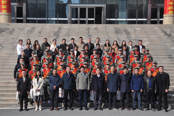 与会的院领导还向应征入伍学生发放了纪念品,并合影留恋。
