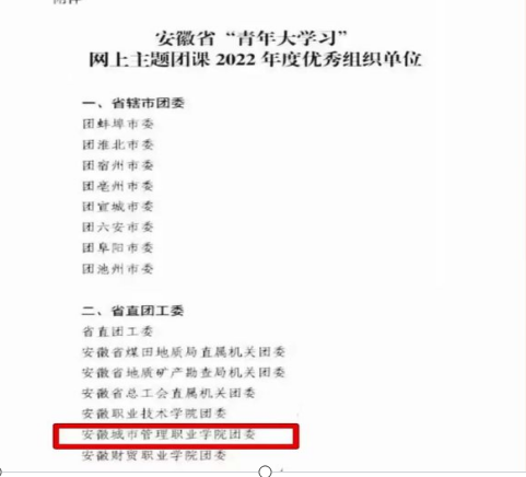 近日,中国共产主义青年团安徽省委员会发布了安徽省“青年大学习”网上主题团课2022年度优秀组织单评选表彰结果,我院团委荣获此荣誉称号。