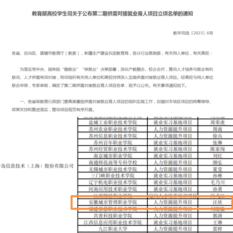 近日,教育部高校学生司发布了《教育部高校学生司关于公布第二期供需对接就业育人项目立项名单的通知》(教学司函〔2023〕6号),学院一项供需对接就业育人项目被批准立项。