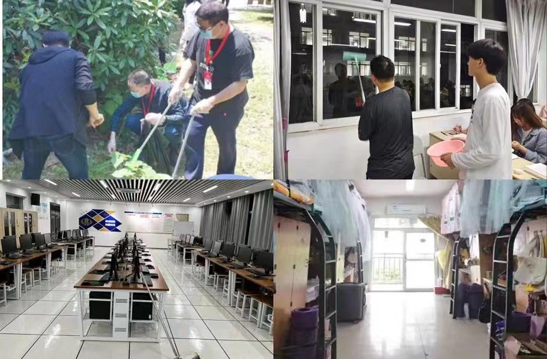 彻底清扫学生公寓卫生。学生处联合各二级学院开展学生宿舍卫生大扫除活动,活动坚持“大清扫、全覆盖、广参与、常态化”的原则,发动全体在校学生,对所有学生宿舍进行一次全面彻底清扫,做到地面干净整洁,窗明几净,床面平整卫生,桌面物品摆放整齐,卫生间清扫彻底,室内清洁无异味无卫生死角。并及时对学生清扫后的宿舍进行卫生安全秩序大检查,督促学生养成良好的卫生习惯,确保活动取得时效长效。