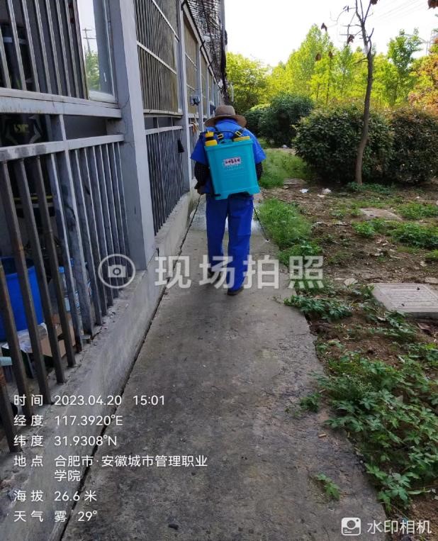 加强校园病媒生物防治。物业单位分别于4月12日、4月20日两次对学生公寓内院、外围进行防蚊蝇、蜈蚣、蛾虫等飞虫爬虫的药物喷洒,减少和控制虫害的繁殖。于4月13日、4月21日两次对办公楼、教学楼等楼宇墙基处进行灭鼠药剂的投放。对各楼宇的卫生间、洗手台下、下水地漏等阴暗潮湿的蚊蝇孳生地点进行每周二次的灭虫药剂喷洒。