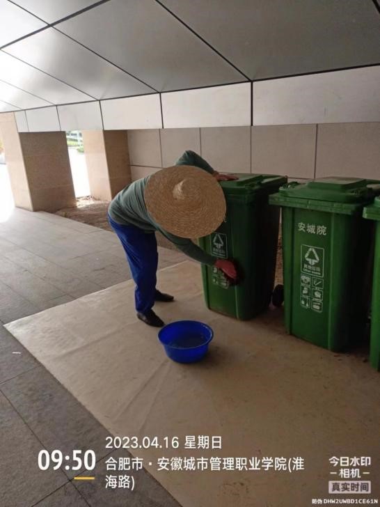 加强整治提升校园环境。物业单位每周一次循环进行校园广告宣传栏的清洁擦拭、各处雨水井杂物的清理、绿化带灌木死角卫生和杂物的清理、冲洗各处垃圾桶停放地的地面等。每月清洗垃圾桶两次。