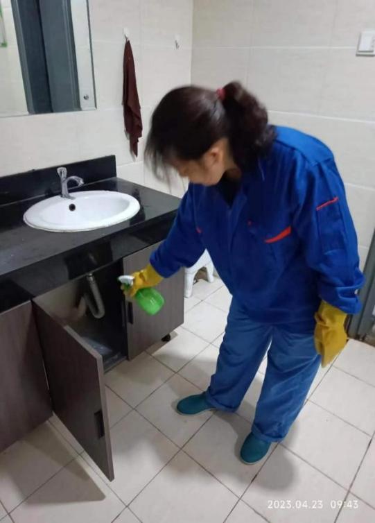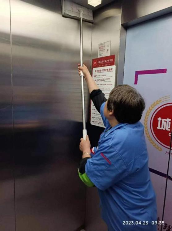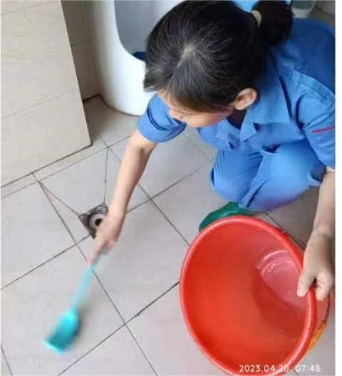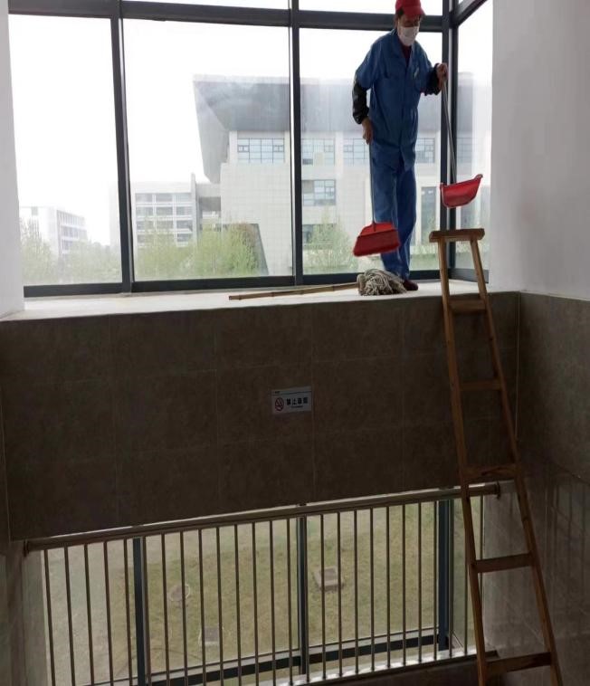 着力消除公共卫生死角。针对卫生间、洗手台镜面、地面过道、踢脚线、墙面窗台、走廊不锈钢栏杆、门牌、开关面板、楼梯扶手等加强清洁频率,做到公共区域、公共设施设备无卫生死角、无积尘、污迹水迹、蜘蛛网。卫生间干净整洁、无异味、尿迹。重点对图书馆、健康驿站、综合楼各会议室、电梯、报告厅进行专项清洁、消毒。