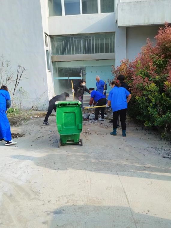突击清理整治脏乱之处。对食堂周边、教学楼周边、在建项目施工区域、学生公寓区域等卫生状况差的地点进行了突击清理整治,并通过发放宣传单、树立宣传牌、宣传引导垃圾分类投放等加强学生爱护环境的意识。
