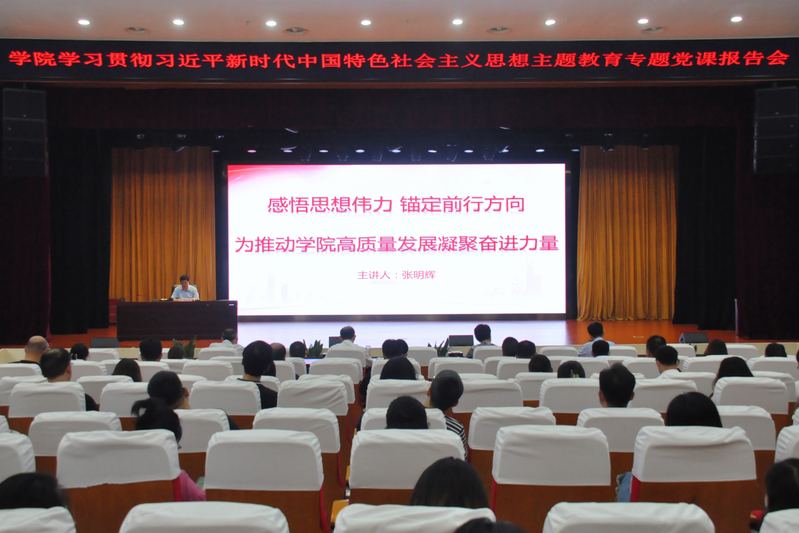 5月18日上午,学院党委书记张明辉以“感悟思想伟力、锚定前行方向,为推进学院高质量发展凝聚奋进力量”为题,在新站校区西辅楼报告厅主讲学习贯彻习近平新时代中国特色社会主义思想主题教育专题党课。