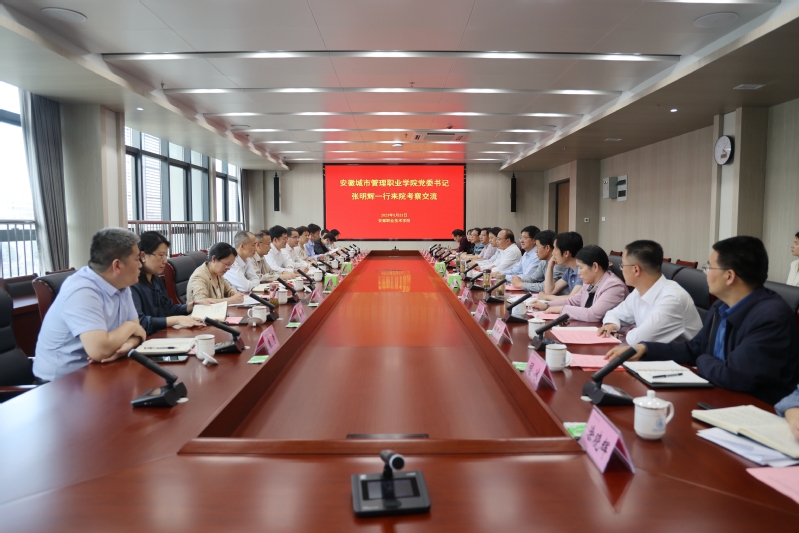 座谈会上,张明辉简要介绍学院的建设发展情况,他表示,安徽职业技术学院近年来办学成效显著,围绕发展目标战略推动了一系列的改革创新,值得安城院认真学习借鉴。希望双方能在党的建设、思想政治工作、干部人才队伍建设、“双高校”建设、提升人才培养质量、服务经济社会发展等领域开展全方位交流合作,互助共赢,为推动地方经济发展贡献职教人的智慧和力量。