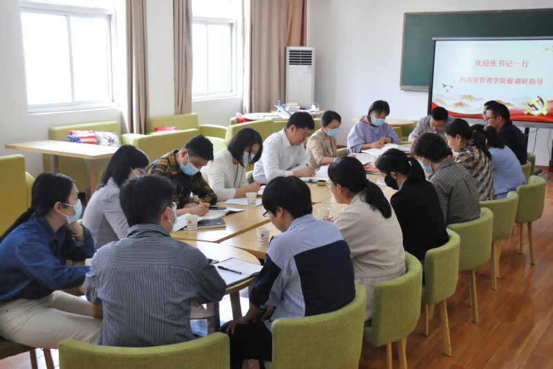 会上,调研组详细了解了商贸管理学院党总支关于基层党组织建设、主题教育工作开展、辅导员工作、学生管理、意识形态责任制落实情况,询问了工作中存在的问题和困难,听取了在以党建引领学院高质量发展方面的工作意见和建议。