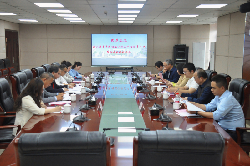 专家组实地走访了学院普通话水平测试站,就新时期普通话水平测试新规程、国家语言文字基地建设等工作同现场工作人员进行了亲切交流。随后在综合楼1209会议室参与了座谈会。
