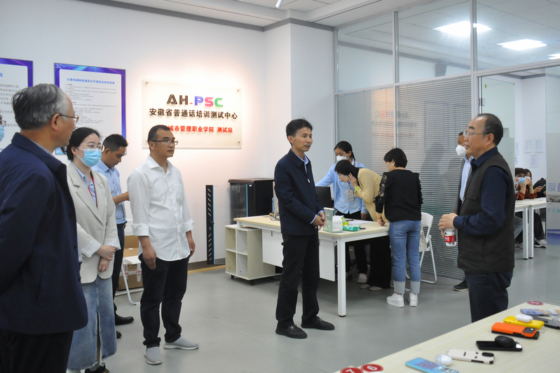 本次国家语委、安徽省语委领导对学院普通话水平测试工作的调研指导,将会更好地促进学院全面贯彻落实党的二十大报告提出的“加大国家通用语言文字推广力度”,充分发挥学院在服务国家通用语言文字高质量推广普及中的作用,为奋力推进新时代语言文字事业高质量发展做出应有的贡献。(文/公共教学部 图/党政办公室)