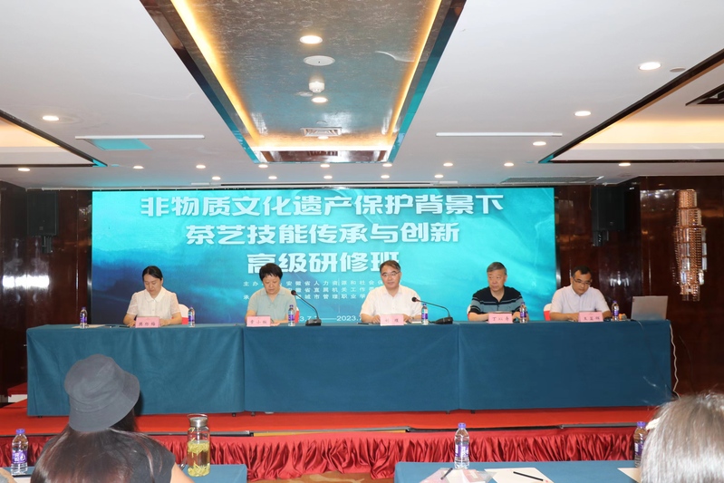 7月8日至7月10日,由安徽省人社厅主办、安徽省直机关工委指导、我院承办的“非物质文化遗产保护背景下茶艺技能传承与创新”高级研修班在合肥成功举办。学院党委副书记、院长刘瑾出席开班式并致辞,副院长章小槟主持开班式,继续教育中心、商贸管理学院负责人及旅游管理教研室全体教师,省内外高校教师、中小学教师、茶产业相关企业、管理机构、行业等工作人员、产茶地区茶产业主管部门负责人、社区茶艺爱好者130余人参加高级研修班。