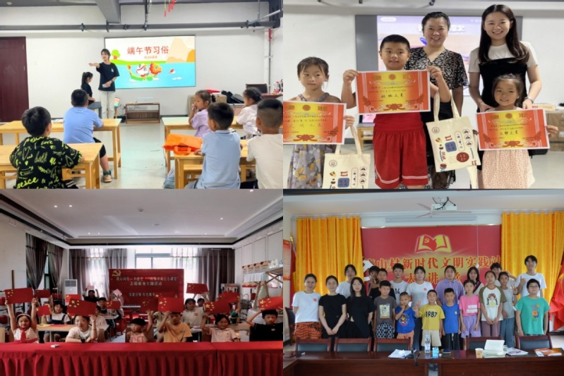 健康养老学院实践队在刘大郢社居委党群服务中心开展一系列活动,丰富辖区青少年暑期生活,搭建校地沟通交流,共同学习和成长的平台;学前教育学院实践队以“童心向党”为主题,开展了绘画、手工制作、趣味游戏和红色教育等实践活动;团委赴绕山村的实践队为留守儿童开展了暑期作业辅导、暑期安全教育宣讲等活动。