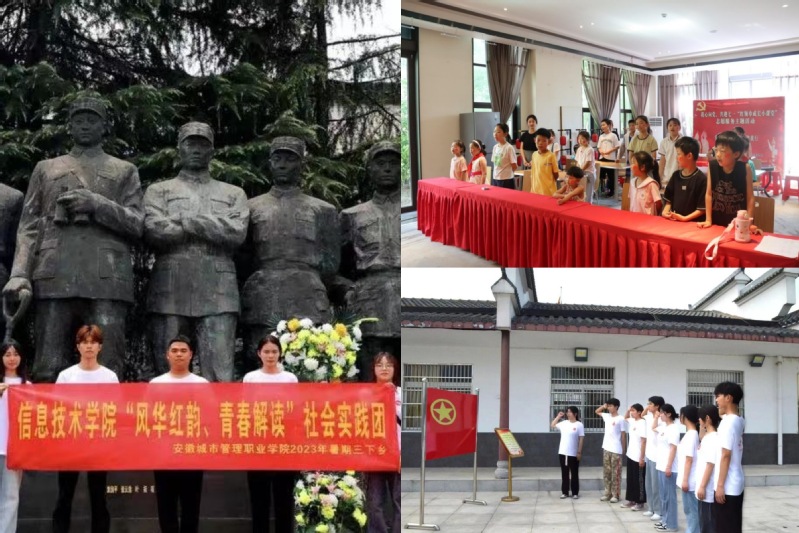 信息技术学院实践队前往黄山市岩寺镇新四军军部旧址纪念馆参观,近距离感悟新四军的发展历程及奋勇抗敌的伟大壮举;学前教育学院实践队来到六安市裕安区韩摆渡居委会参观红色村史馆、军事文化广场和“益善堂”老红军纪念馆,并组织当地留守儿童开展了“红色基因传承”主题系列活动;团委赴绕山村的实践队参观了六安市干汊河镇胡底烈士纪念馆,感悟胡底烈士的英雄事迹,并在纪念馆的广场上重温入团誓词。
