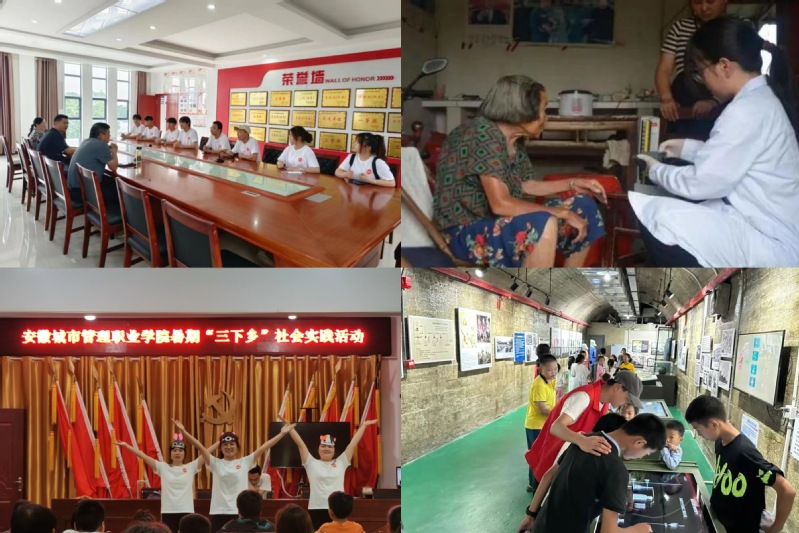 实践团队开展乡村调研,乡村助老,助力乡村振兴,践行青春使命。信息技术学院、商贸管理学院、健康养老学院、轨道交通学院实践队伍分别到黄山市岩寺镇、安庆市宜秀区先锋村、淮北市四铺镇就如何提升大学生社会实践精准化服务社区(乡村)开展一线调研。