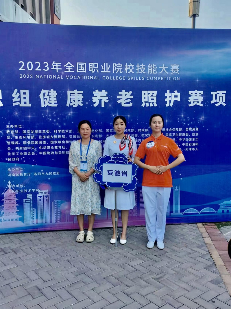 7月22日,2023年全国职业院校技能大赛高职组健康养老照护赛项在洛阳职业技术学院落下帷幕。分别有来自全国各地的61支队伍参加。我院教师董丽平、学生杨洁仪组成师生团队,代表安徽省参加专业组比赛。经过两天的激烈角逐,荣获二等奖。