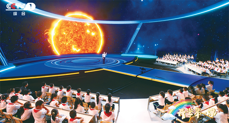 2023年《开学第一课》以“强国复兴有我”为主题,从传统文化、文明探源、生态文明、乡村振兴、国防教育、科技创新等多个方面,全景展示中国式现代化的万千气象。图为中国科学院高能物理研究所研究员、“拉索”(LHAASO)首席科学家曹臻在向同学们介绍世界上海拔最高、规模最大的宇宙射线观测装置“拉索”的前世今生。(教育部供图)