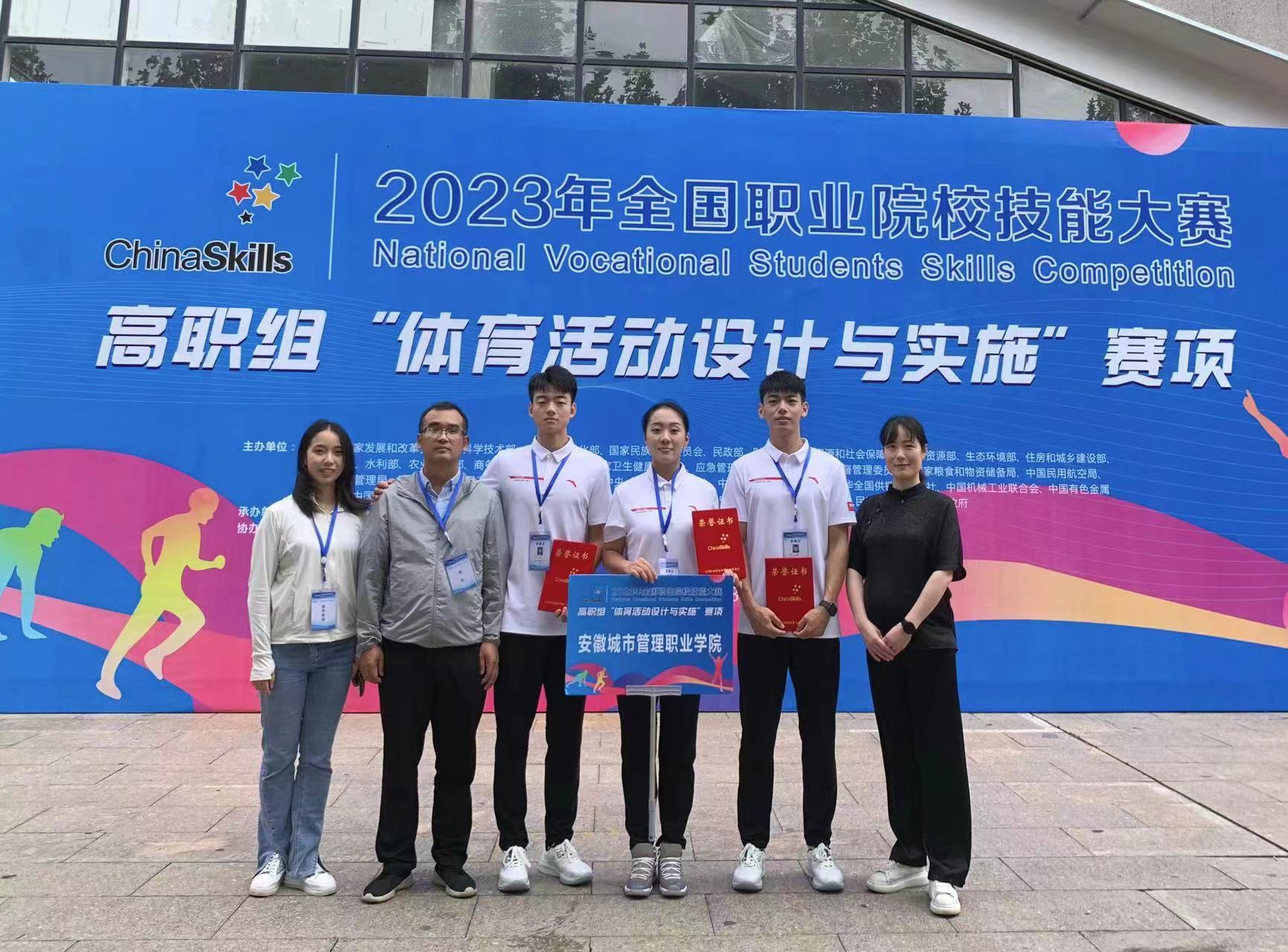 9月22日至9月25日,2023年全国职业院校技能大赛高职组赛项“体育活动设计与实施”在日照职业技术学院成功举办。本次比赛共有来自全国26个省、自治区、直辖市的49支参赛队参赛。我院选派以公共教学部主任王显辉为领队,宣丽、何瑶为指导老师,王松、陆旭、陈雅宁三名队员代表安徽省参加比赛。经过激烈角逐,我院参赛队最终排名第九,荣获国赛二等奖。