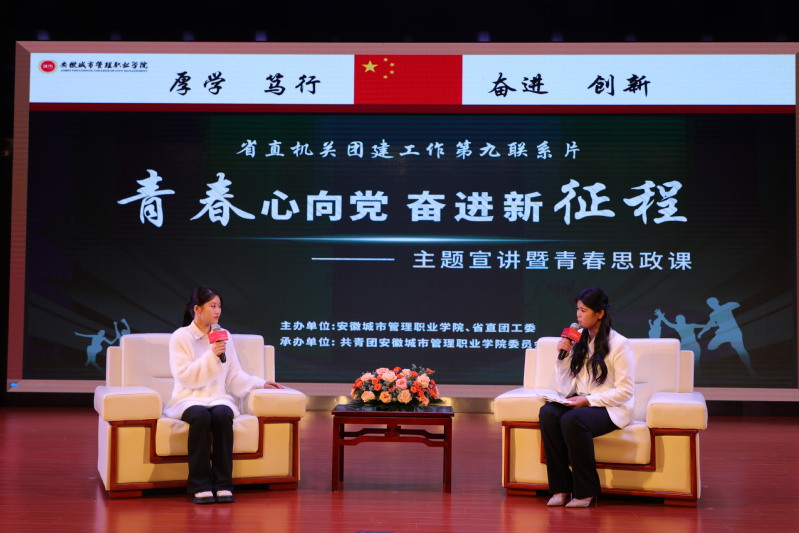 9月26日,由共青团安徽省直属机关委员会与我院共同主办的“青春心向党 奋进新征程”宣讲活动暨青春思政课在新站校区报告厅开讲,学院党委书记张明辉,党委副书记、院长刘瑾,省卫健委机关团委书记许婉,各二级学院党总支、团总支负责人出席。