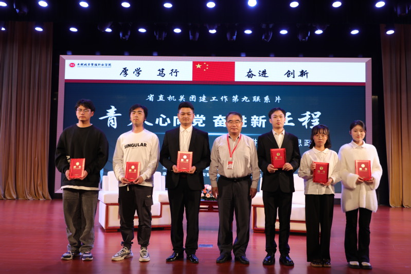 四位优秀青年代表结合学习和生活实际,向学弟学妹分享了成长经历。安徽省“百优大学生”谢昱分享了自己因为经常参加各类志愿服务和无偿献血结识了一批共产党员,从这些党员身上看到了光,决定积极向党组织靠拢,以成长为一名合格的共产党员为目标、为光荣的心路历程。安徽省西部计划志愿者柏程成讲述了自己在志愿服务新疆的时光里,克服了各种困难,在担当中历练,在尽责中成长的过程。全国职业院校技能大赛获奖选手朱雨婷讲述了自己坚定技能成才决心,在提升技能的道路上,耐心执着、从不言弃,经过上万次的练习最终获得国赛二等奖的过程。校友冯宣杰讲述了自己“咬定目标、做好规划、坚持做好每一件小事、完成每一项任务、履行每一项职责”,5年的持续奋斗,完成了从专升本到本升硕青春逆袭故事。