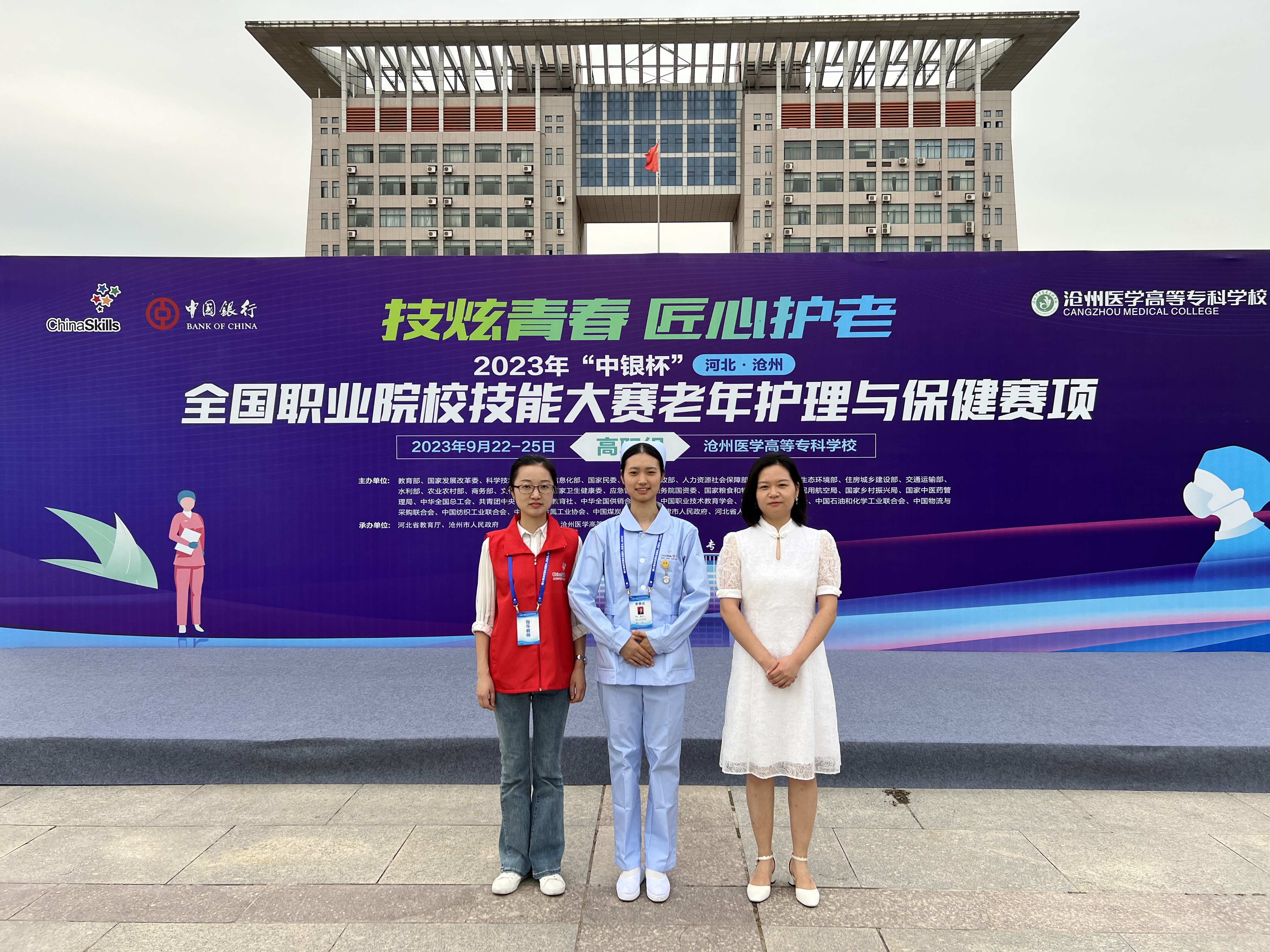 9月22至9月25日,2023年全国职业院校技能大赛(高职组)老年护理与保健赛项在沧州医学高等专科学校成功举办。来自全国28个省、自治区、直辖市的54名参赛选手同台竞技,我院学子夏心宇在领队健康养老学院党总支副书记李景凤、教师董丽平、汪金丽的指导下,荣获国赛三等奖。