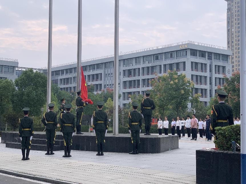 为庆祝中华人民共和国成立74周年,大力弘扬爱国主义精神,加强校园文化建设,进一步增强青年学子的国家荣誉感与社会责任感,10月1日早晨,学院分别在新站校区和经开校区举行升旗仪式,共祝祖国母亲节日快乐。院领导章小槟、张昊、王波、相关部门负责人及部分师生代表参加升旗仪式。