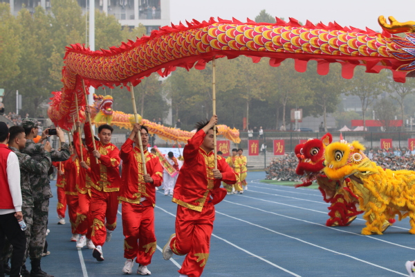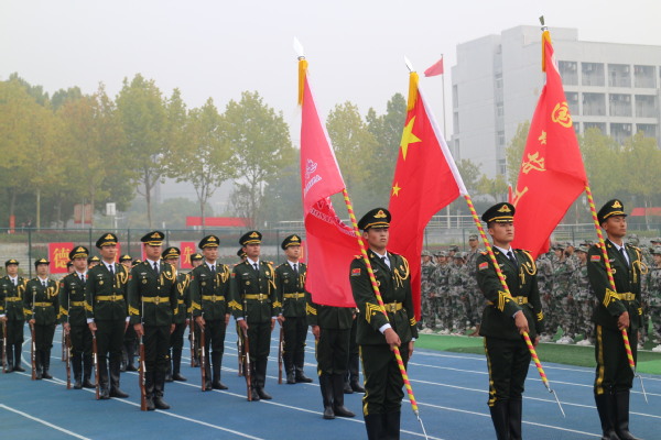 在雄壮激昂的国歌声中,2023年新生开学典礼、军训结训汇报暨第十三届田径运动会(教职工趣味运动会)开幕式正式开始。孙建华宣读了军训表彰决定,张明辉向瑶海区武装部赠送锦旗。