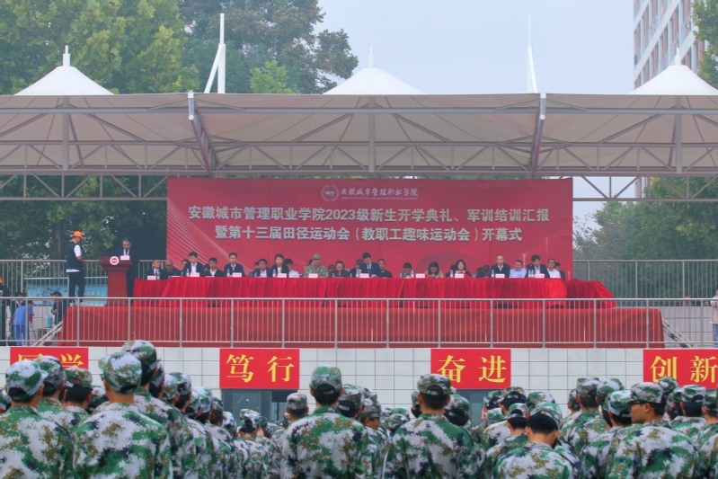 金秋时节,硕果盈枝。10月27日上午,安徽城市管理职业学院2023级新生开学典礼、军训结训汇报暨第十三届田径运动会(教职工趣味运动会)开幕式在新站校区顺利举行。学院领导班子出席会议,2023级全体学生、运动员代表、全体教职工参加大会。大会由党委副书记孙建华主持。