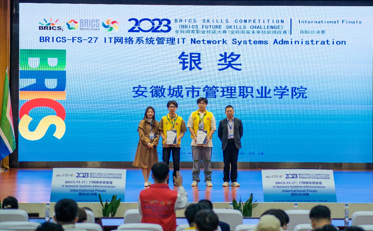 11月5日,2023金砖国家职业技能大赛IT网络系统管理赛项国际总决赛在我院拉开帷幕,来自全国各地的41支代表队参加了比赛,经过两天的激烈竞争,11月6日下午圆满落幕。闭幕式暨颁奖典礼在我院报告厅举行,本次赛项裁判长深圳职业技术大学梁广民教授宣布了获奖名单,并对获奖队伍表示祝贺。