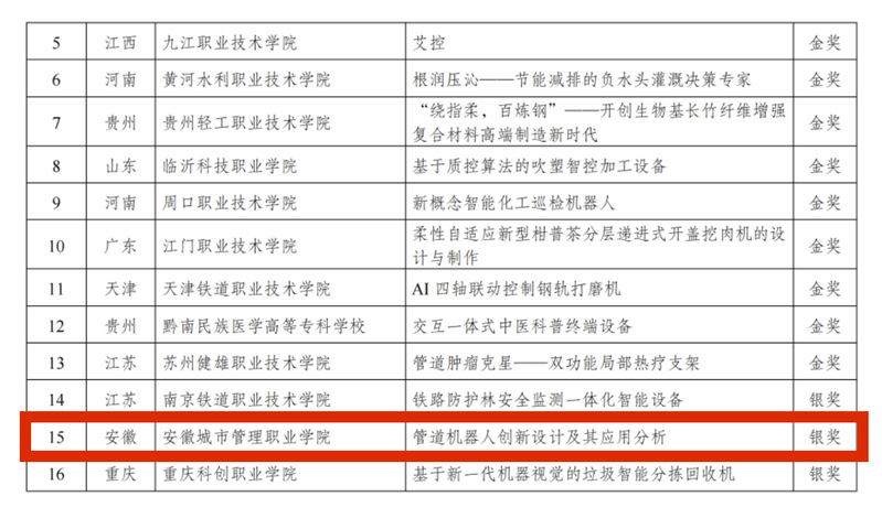 本次创新创效竞赛设中职组和高职组2个竞赛组别,分别设置技术革新、创意设计、管理创新3个竞赛方向。来自全国26个省份的241个项目、700余名参赛人员同台竞技,经专家层层评审,我院作品《管道机器人创新设计及应用分析》(指导教师:汪洋、陆青松)在国赛高职组中斩获银奖。