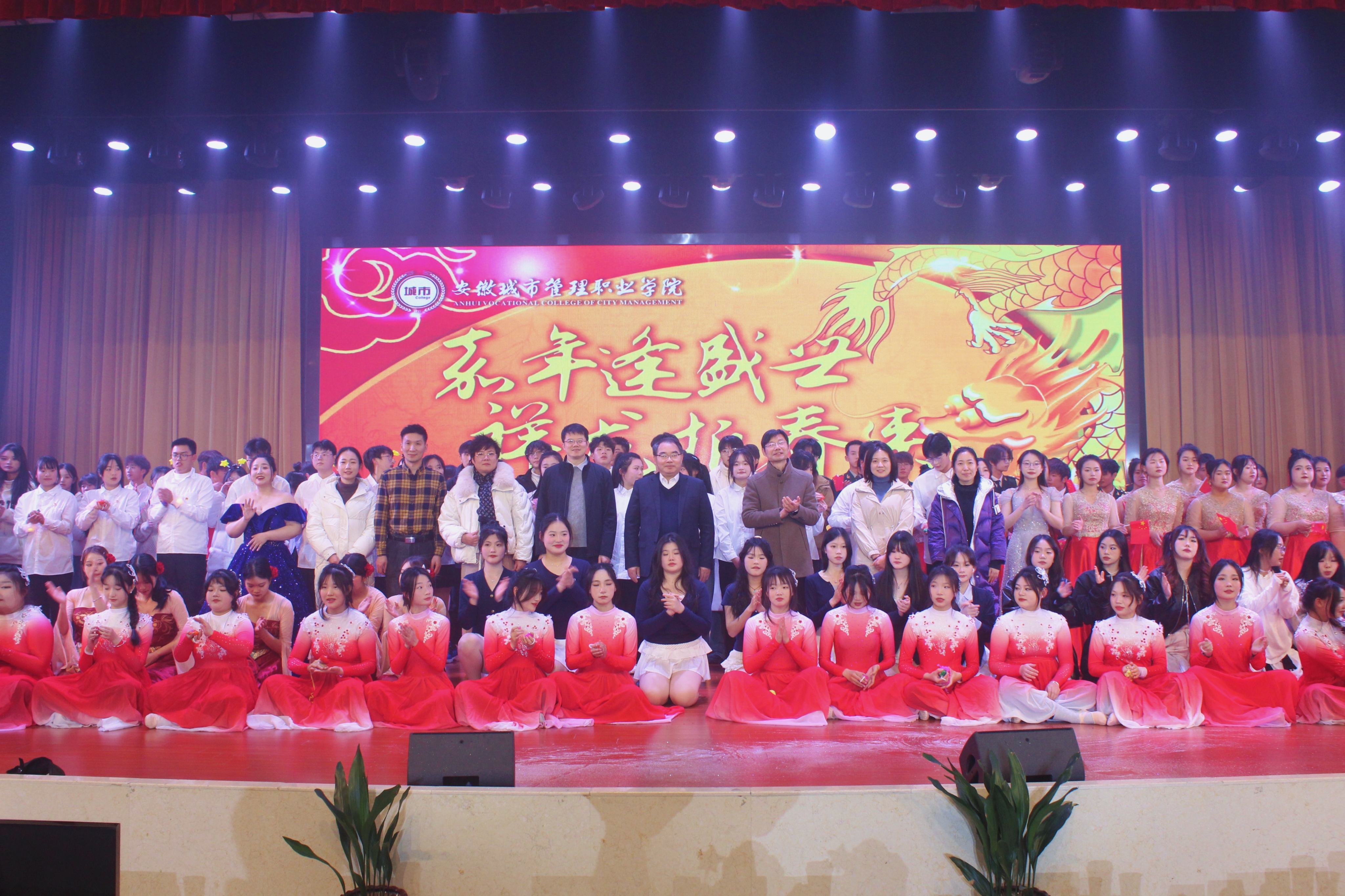 辞旧迎新春色新,兔去龙来福满门。12月22日晚,学院在新站校区西辅楼报告厅举办“嘉年逢盛世,祥龙报春来”元旦晚会。学院党委书记张明辉,党委副书记、院长刘瑾,副院长张昊、王波出席晚会。部分职能部门负责人以及团委所有工作人员参加本次晚会。