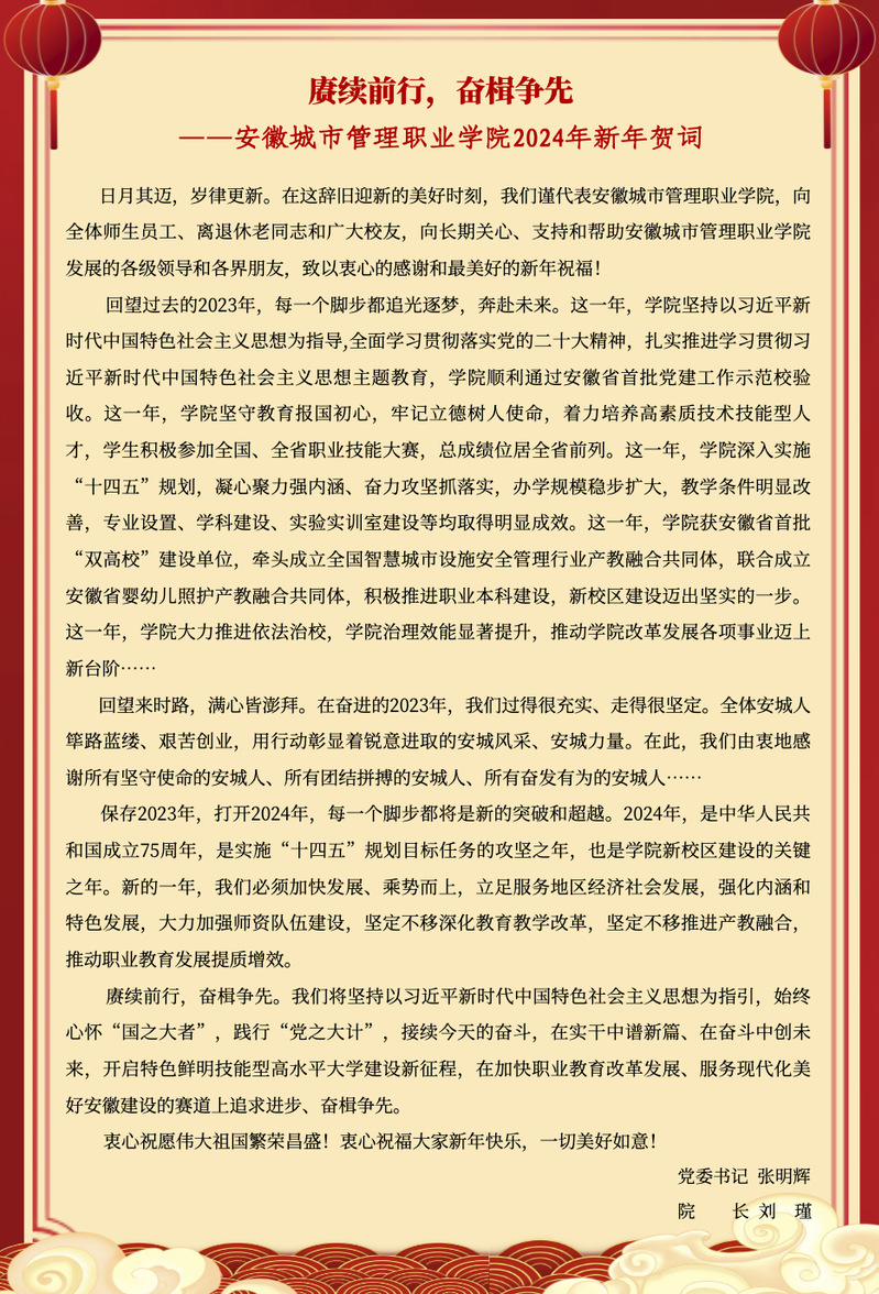 赓续前行,奋楫争先——安徽城市管理职业学院2024年新年贺词