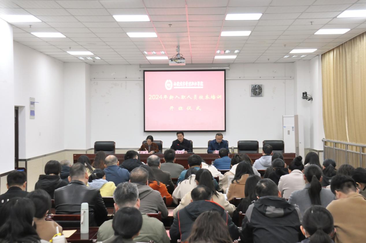 党委书记张明辉出席开班仪式并致辞,他代表学校党委班子对新入职教师表示热烈欢迎,并带领他们了解学校发展历程,感受安城人勇于担当、开拓创新、艰苦奋斗、攻坚克难的奋斗精神。他强调,新入职教师要了解校史校风,增强荣誉感和自豪感;坚定理想信念,增强使命感和责任感;找准职责定位,增强认同感和归属感。要认真学习习近平总书记关于教育的重要论述,“以教育家为榜样,大力弘扬教育家精神”,做有理想信念、有道德情操、有扎实知识、有仁爱之心的好老师,为实现职业本科建设目标、推动学院内涵式高质量发展奋力前进。