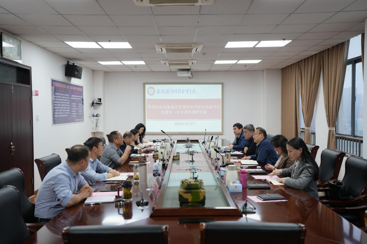 安徽国防科技职业学院党委副书记冯伦久、六安职业技术学院党委副书记李萍分别带领相关对口业务部门负责人参加调研座谈。孙建华介绍了我院的发展历程、基本情况以及绩效改革工作的开展情况,并表示希望能与两校在绩效工作改革等方面加强沟通交流,借鉴宝贵经验,促进学院不断提升办学实力,服务区域经济发展。