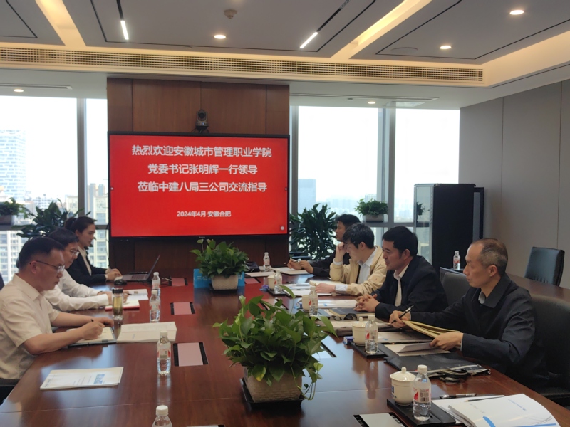 4月18日,学院党委书记张明辉、纪委书记秦少锋、城市建设学院及总务处相关负责人赴中建八局三公司开展校企合作、访企拓岗交流活动,中建八局三公司总经理杨首瑜携人力资源部负责人参加了交流。