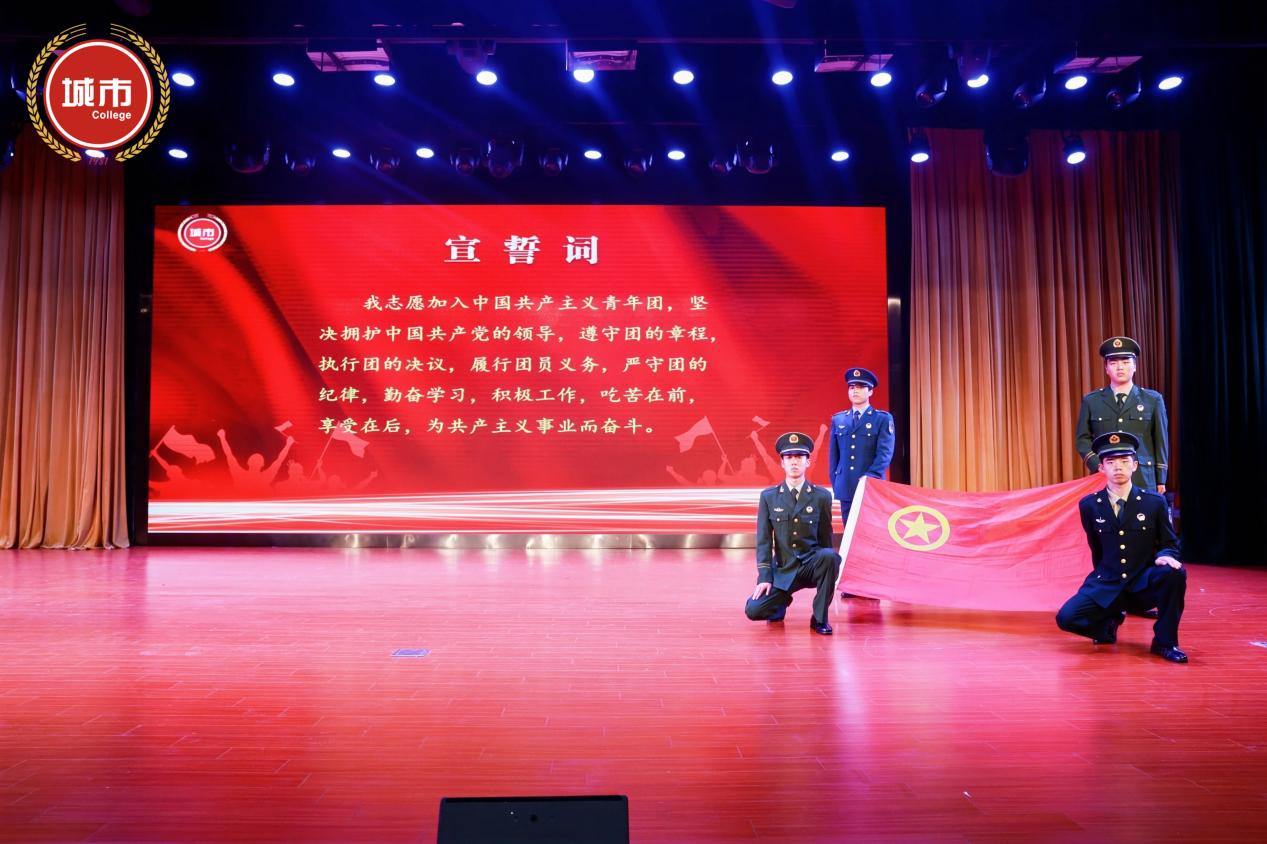 大会尾声,由退伍士兵献团旗,全体团员重温入团誓词,大会在热烈昂扬的中国共产主义青年团团歌中落下帷幕。