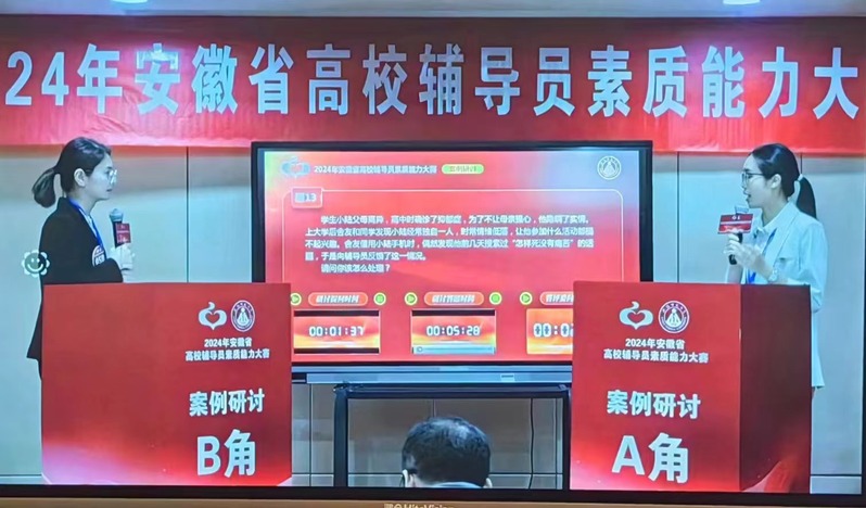 本次比赛由中共安徽省委教育工委主办,教育部高校思想政治工作队伍培训研修中心(安徽师范大学)承办,共有来自全省各个高校144名辅导员参加。大赛共设置基础知识测试、案例研讨、谈心谈话3个项目,全面系统考查参赛选手的理论知识、专业素养、逻辑思维、语言表达、临场应变、创新思维等基本职业能力。吴芒芒在比赛中展现出了扎实的理论基础、突出的业务能力和昂扬的精神风貌,充分展示了我校辅导员的风采和水平,得到了评委和专家的认可,最终荣获二等奖。