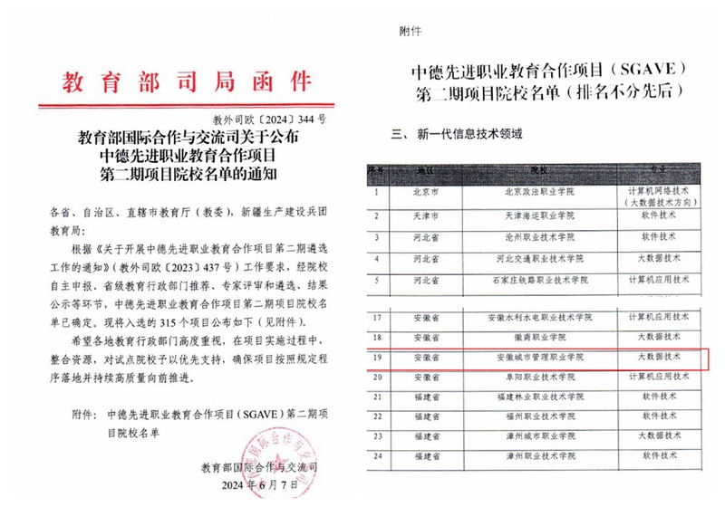 近日,教育部公布了《中德先进职业教育合作项目(SGAVE)》第二期项目院校名单,我院大数据技术专业成功入选。