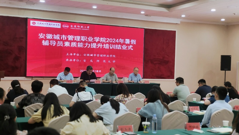 近日,由学院党委学工部组织、安庆师范大学承办的“安徽城市管理职业学院2024年暑期辅导员素质能力提升研修班”圆满结束。学院党委委员、副院长王波带队参训。培训以专题报告、专家讲授、研讨交流、实践教学等形式展开,内容涵盖辅导员职业素养、岗位职责、工作实务及实践案例等,全院专职辅导员80人参加培训。