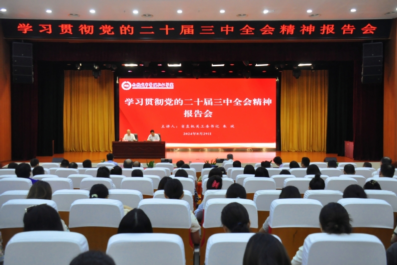 8月29日上午,学院召开学习贯彻党的二十届三中全会精神报告会。省委宣讲团成员、省直机关工委书记朱斌作宣讲报告。学院党委领导班子成员出席会议,全体教职工参加会议。会议由党委书记张明辉主持。