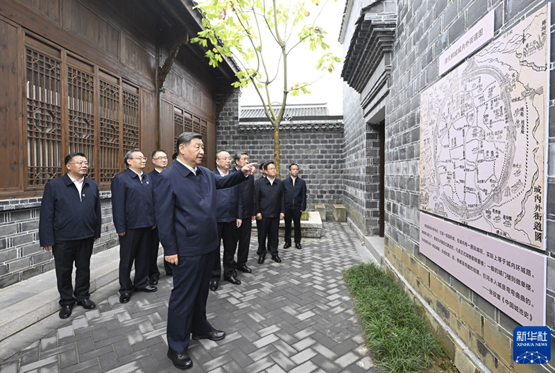 10月17日至18日,中共中央总书记、国家主席、中央军委主席习近平在安徽考察。这是17日下午,习近平在安庆桐城市六尺巷考察。(新华社记者 燕雁/摄)