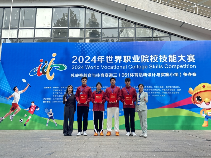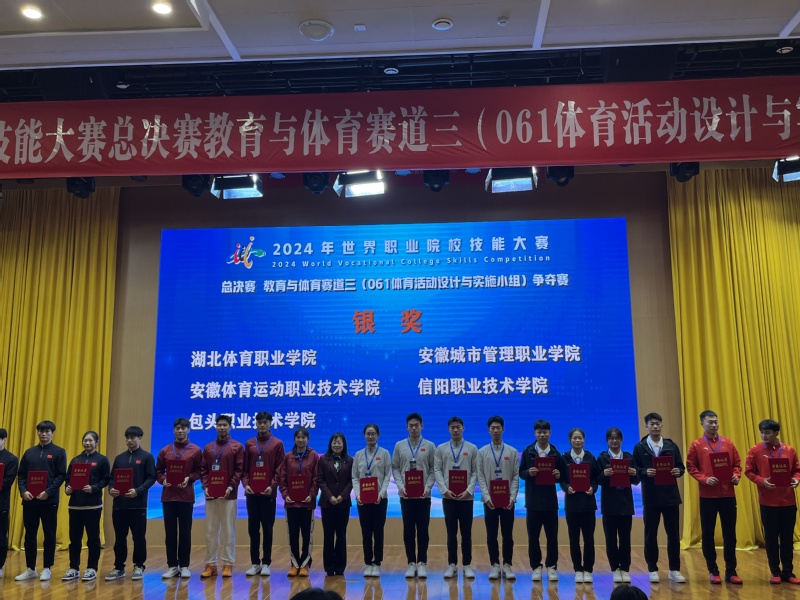 10月22日至25日,2024年世界职业院校技能大赛总决赛教育与体育赛道三(体育活动设计与实施小组)争夺赛在日照职业技术学院举办。学院选派学生杨成、张宇航、毕井涛、宫路遥组成的代表队,在教师宣丽、王亚楠的指导下,作为代表安徽的两支队伍之一,与来自全国53支参赛队伍进行激烈角逐,最终荣获银奖。
