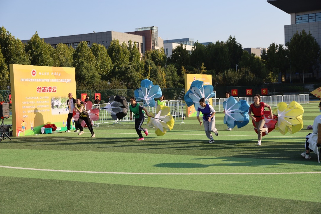 “壮志凌云”项目,老师身背减速伞赛跑,尽显拼搏风采。该项目象征着老师们在教育事业中奋勇向前的决心和壮志。