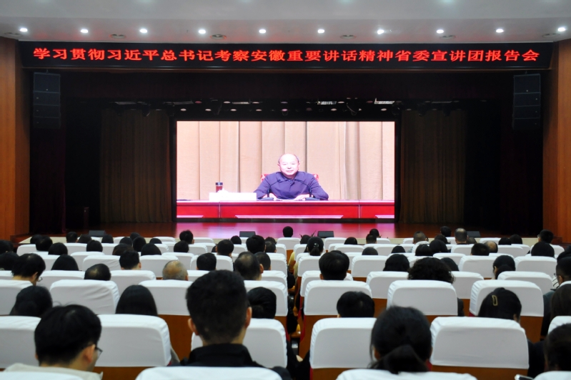 11月15日,学院集中收看学习贯彻习近平总书记考察安徽重要讲话精神省委宣讲团报告会视频。省委宣讲团成员、省直机关工委书记朱斌作宣讲报告。