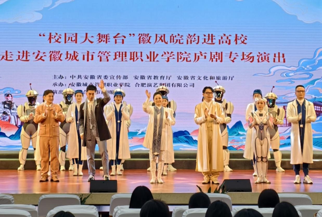 庐剧,作为安徽的传统地方剧种,承载着深厚的地域文化与历史记忆。演员们凭借精湛的技艺与深情的演绎,生动展现了庐剧的独特魅力。此次“徽风皖韵进高校”的庐剧演出,犹如一场文化的甘霖,润泽了校园的每一个角落,也让我们对这一古老艺术有了全新的认识与感悟。婉转的唱腔、细腻的表演与现代科技的主题相交融,让现场同学沉浸其中,深刻领略到徽派文化的深厚底蕴,为大家打开了一扇了解本土文化的新窗口。